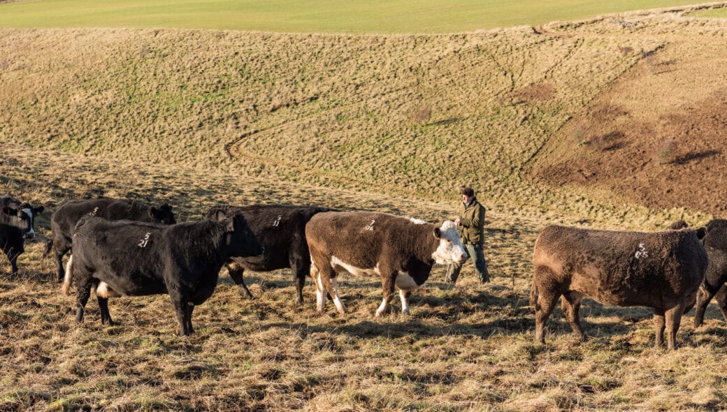 Saughland Farm is a total of 320 hectares, 70 hectares of which is arable. Peter Eccles joined Saughland Farm as farm manager three years ago and since then has more than doubled the sheep numbers (from 950 to over 1900) and is slowly moving the flock from inside to outside lambing. The farm has 55 suckler cows, mainly Angus, Hereford, and Limousin crosses, which complement the sheep enterprise and are integral to the grazing system.