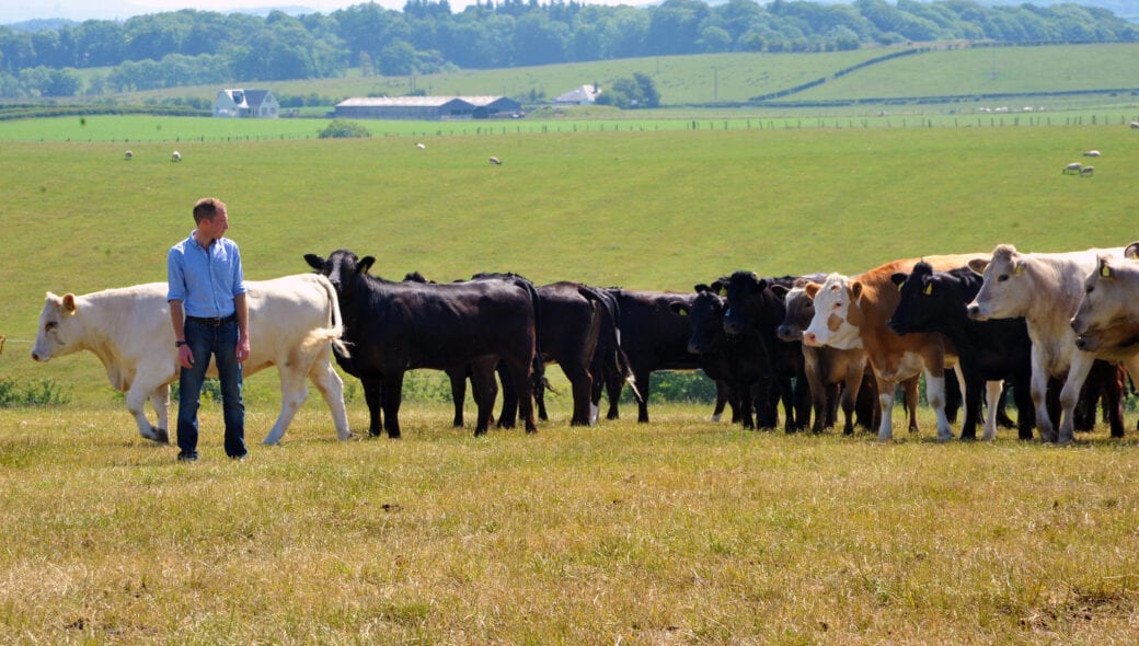 The main farm enterprise is buying in store cattle and finishing them for sale direct to local abattoirs but the family also have a herd of 10 suckler cows. The farm runs 140 cross ewes producing Suffolk and Texel prime lambs that are mainly sold through nearby Ayr market. Everything grown on the farm is used on-farm including 56 hectares of silage and hay and 28 hectares of spring barley.