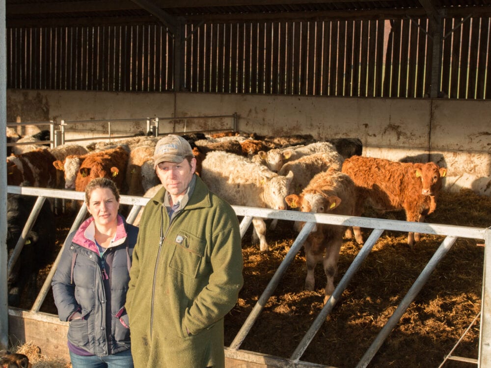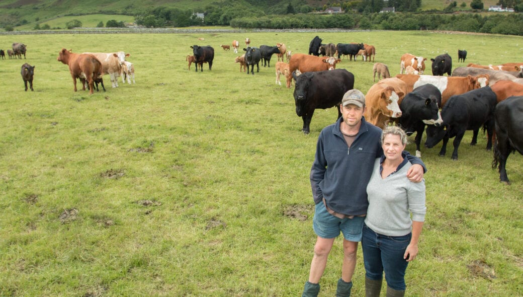 The family runs 900 breeding ewes, of which about half are Lairg type Cheviots and the other half Lleyn cross. The Ballantynes also have 80 suckler cows which are mostly a mixture of Simmental cross native cows which are all outwintered.