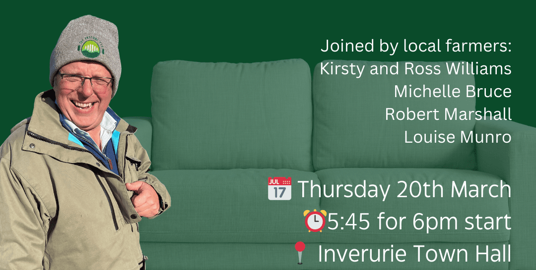 Open to everyone, whatever their age, ‘On the Couch with Michael Blanche’, host of The Pasture Pod, will be held on Thursday 20 March from 5.45-8pm at Inverurie Town Hall. Food provided.